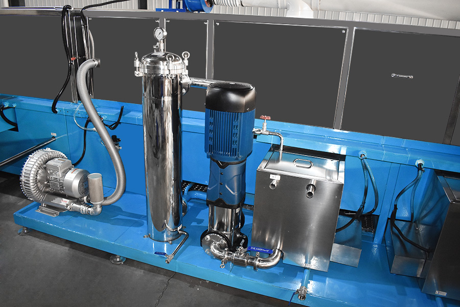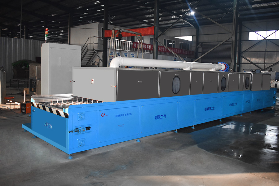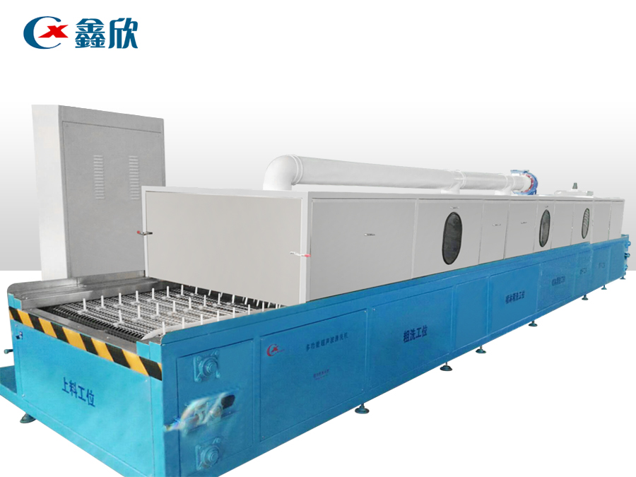 該設(shè)備有上下料網(wǎng)帶、超聲波清洗工位、噴淋漂洗工位、高壓風(fēng)切、熱風(fēng)烘干工位、溫控水加熱系統(tǒng)、風(fēng)機(jī)、溫控空氣加熱系統(tǒng)、移動式風(fēng)刀、PLC+觸摸屏控制系統(tǒng)、管路系統(tǒng)及智能電器控制系統(tǒng)等組成。自動進(jìn)排液和自動加溫系統(tǒng)完全實(shí)現(xiàn)了無人干預(yù),自動運(yùn)行,很大程度上降低了工人的勞動強(qiáng)度。先進(jìn)的霧氣處理系統(tǒng)可以將清洗時(shí)產(chǎn)生的霧氣冷凝回流,空氣經(jīng)過濾和活性炭吸附后排出。