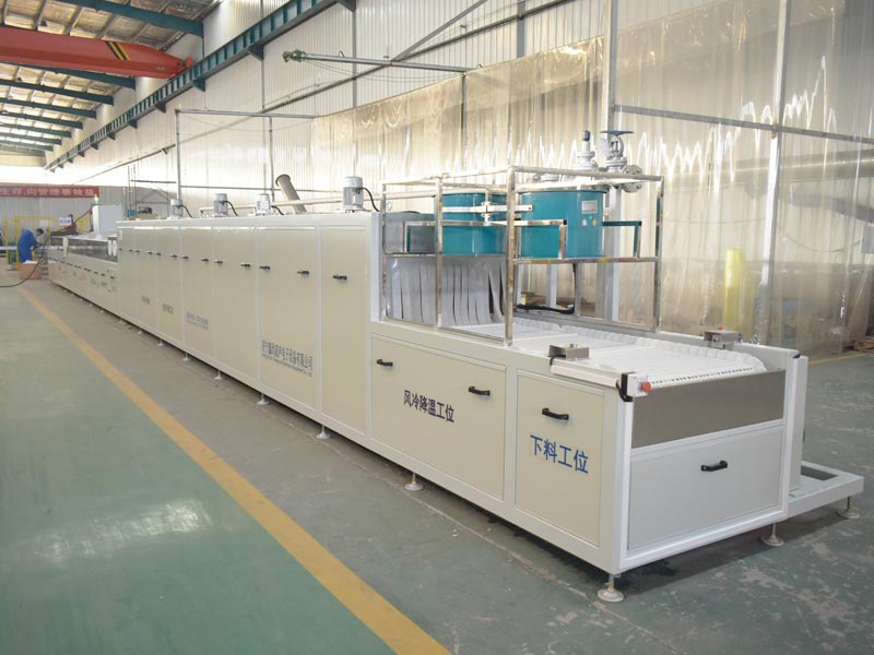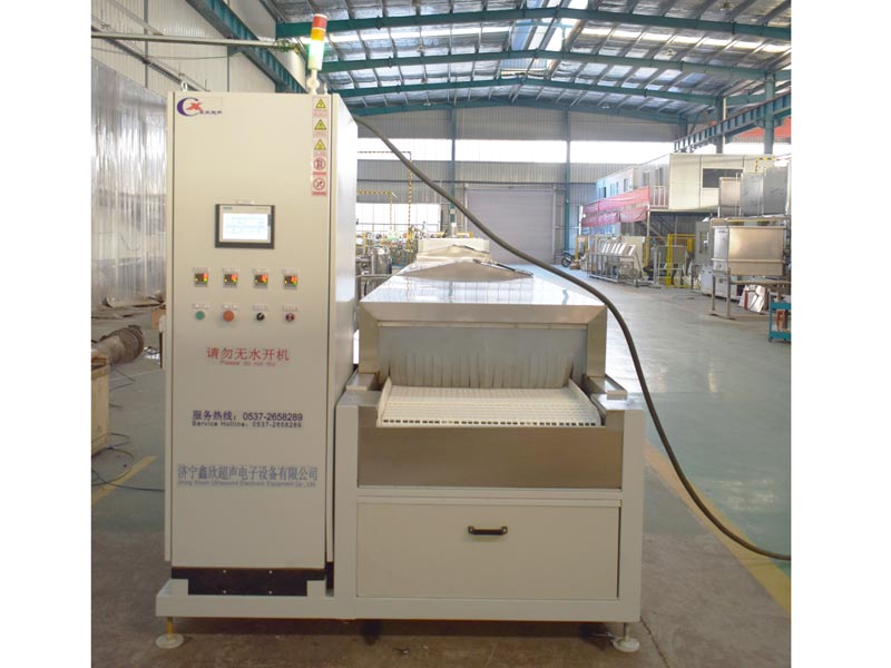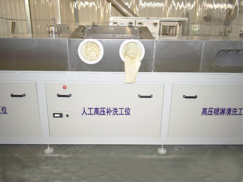 該設(shè)備為全自動高潔凈度清洗機,整機為網(wǎng)帶鏈條式傳動機構(gòu)。采用超聲波清洗、人工高壓補洗、高壓噴淋清洗、慢拉脫水工位、高壓風切、人工補吹、干燥爐、風冷等工藝。該設(shè)備共5個工位:上料工位、超聲波清洗工位、人工高壓補洗工位、高壓噴淋清洗工位、慢拉脫水工位、高壓風切工位、人工補吹工位、干燥爐、風冷工位、下料工位。該設(shè)備清洗效果好、提高了工件的清潔度。該機結(jié)構(gòu)設(shè)計及工藝安排合理、自動化程度高、清洗精度高,有效解決了此類工件的清洗難題。